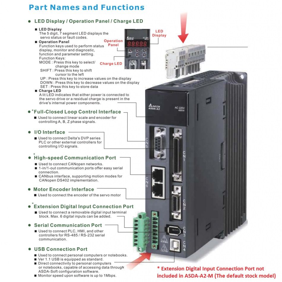 سری ASDA-A2-M از درایوهای سروو نسبت به سری B2 پیشرفتهتر است. برای بیشتر کاربردهای CNC، بسیاری از قابلیتهای اضافی این سری مورد نیاز نیستند. با این حال، سری A2 برای بسیاری از کاربردهای دیگر بسیار جذاب است. این سری میتواند در حالتی به نام “حالت موقعیت داخلی” (PR mode) تنظیم شود. در این حالت، امکان اتصال یک سنسور نقطه مرجع (home switch) وجود دارد و با تنظیم برخی پارامترها، درایو و موتور میتوانند بهصورت خودکار به نقطه صفر بازگردند. همچنین میتوان محدودیتهای نرمافزاری برای بازه حرکتی تعریف کرد. شروع حرکت نیز میتواند از طریق یک سوئیچ تحریککننده رویداد انجام شود. این سیستم شبیه PLC نیست، بسیار سادهتر است، اما برای بسیاری از کاربردها میتواند بسیار مفید باشد. چون تمام منطق کنترلی در داخل دستگاه قرار دارد، نیازی به رایانه اضافی، PLC یا صرف ساعتها برنامهنویسی نیست.