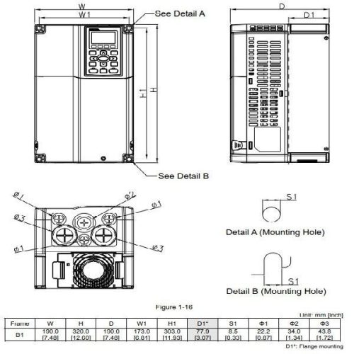درایو سهفاز 460V، توان 7.5 کیلووات (10 HP)، جریان خروجی 18 آمپر، فریم B.