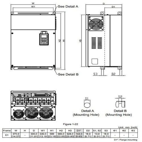 درایو سهفاز 460V، توان 110 کیلووات (150 HP)، جریان خروجی 220 آمپر، فریم E1.