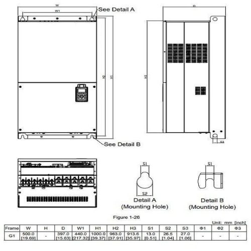 درایو سهفاز 460V، توان 220 کیلووات (300 HP)، جریان خروجی 460 آمپر، فریم G1.